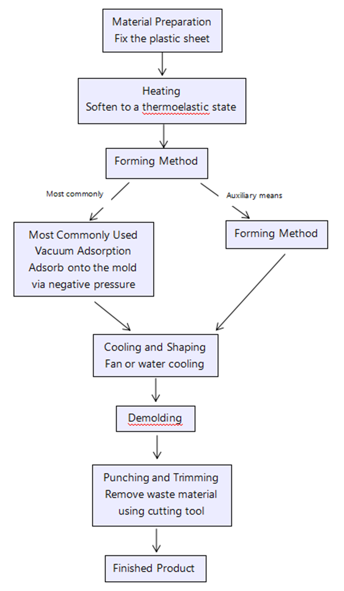 Princípio Fundamental: Aqueça e amoleça a folha de plástico e, em seguida, use o vácuo para adsorvê-la na superfície do molde e ela tomará forma após o resfriamento.