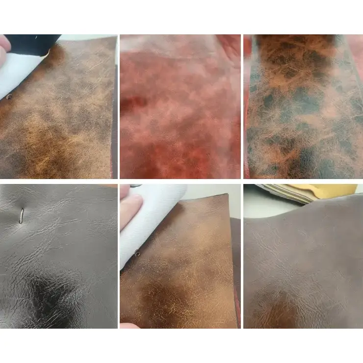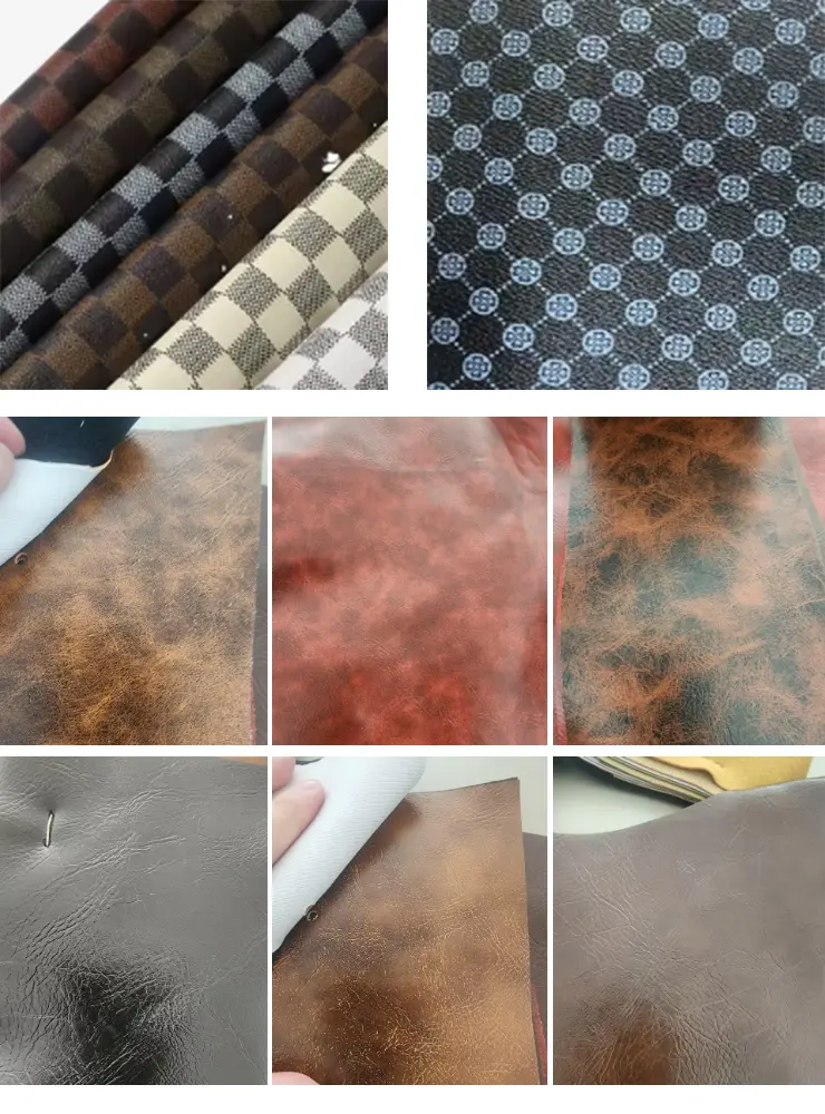 Nossos produtos são certificados pela CE e têm em estoque de fábrica, bem-vindo ao atacado de filme de tecido de couro falso flexível respirável de couro PVC de nós. Disponível em opções de largura de 54/55" e espessura de 0,50-0,90 mm, nosso tecido de PVC possui: